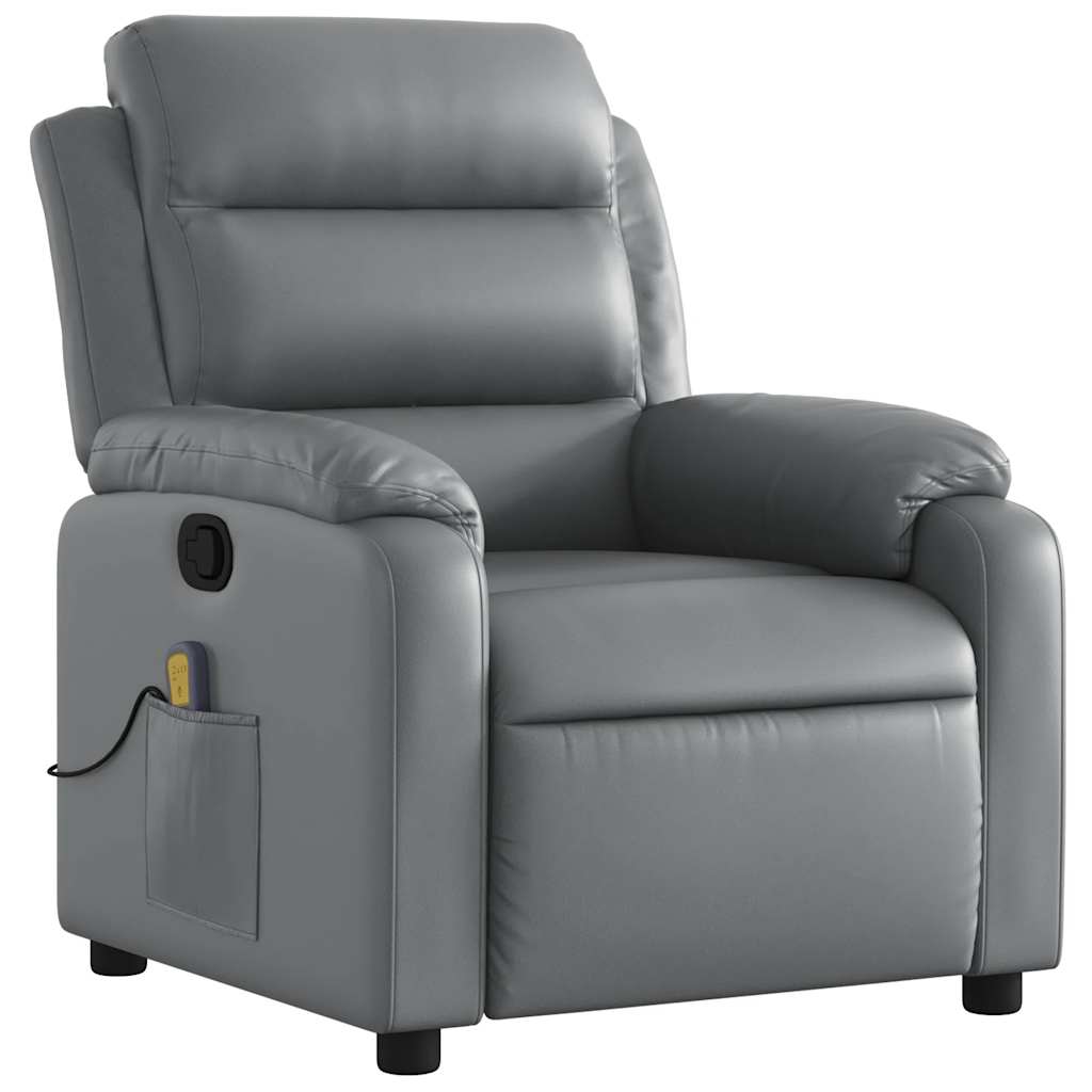 Atlošiamas masažinis krėslas, pilkos spalvos, dirbtinė oda