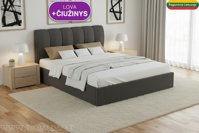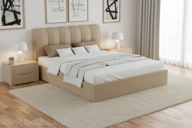 Svarbus šios lovos bruožas – pakeliamasis mechanizmas. Po juo yra talpi patalynės dėžė, todėl jums nereikės kitų baldų jūsų patalynei.