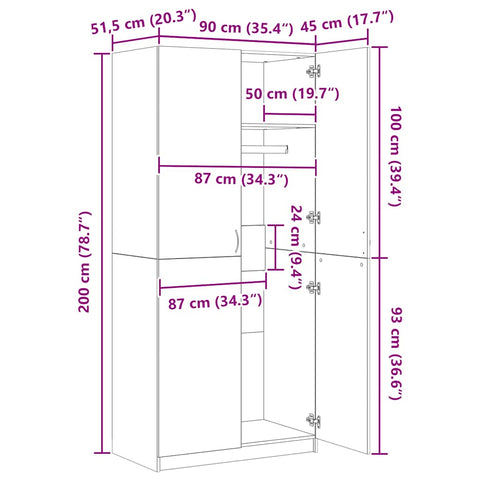 - Matmenys: 90 x 52 x 200 cm (plotis x gylis x aukštis)