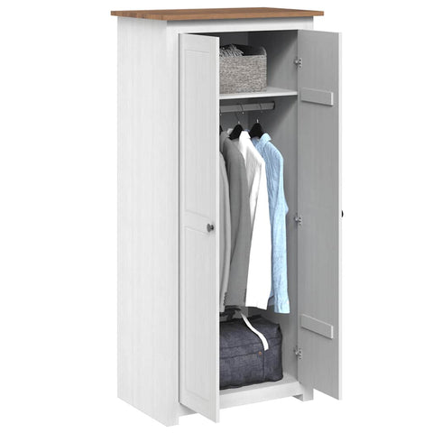 Spinta drabužiams turi pritvirtintą lentyną, skirtą tvarkingai sudėliotus laikyti batus, džemperius, džinsus, kepures, rankines ir t.t. Dideliame skyriuje yra pakabos sija, kurią galite naudoti norint pakabinti paltus, sukneles ir t.t. Pagaminta iš pušies medienos masyvo, drabužių spinta yra tvirta ir užtikrina ilgą tarnavimo laiką.