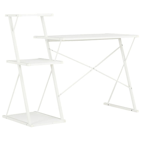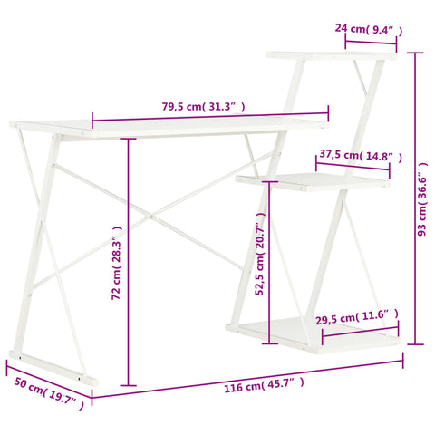 Rašomasis stalas su lentyna, baltos spalvos, 116x50x93cm