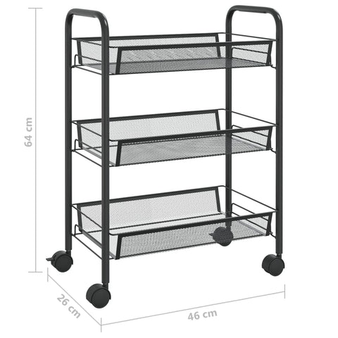 Virtuvės vežimėlis, 3 aukštų, juodas, 46x26x64cm, geležis