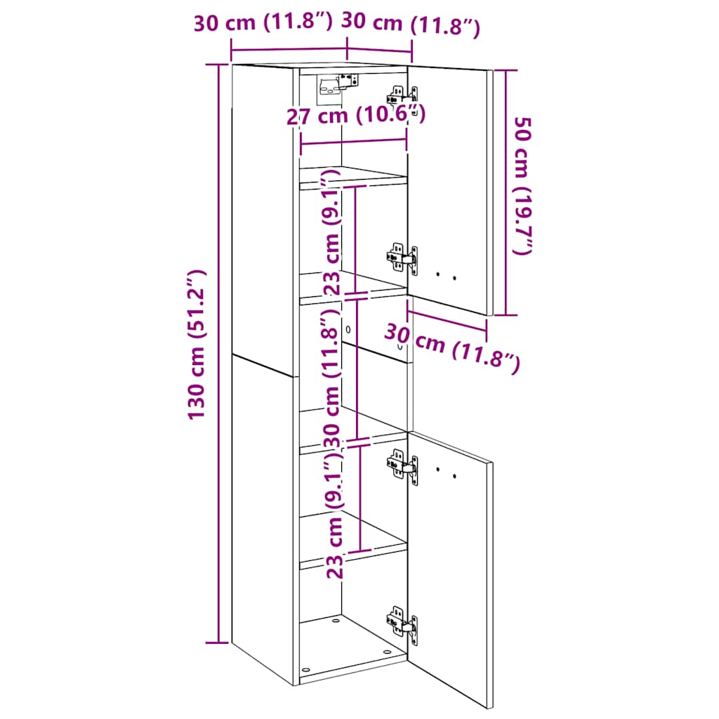 • Bendri matmenys: 30 x 30 x 130 cm (plotis x gylis x aukštis)
