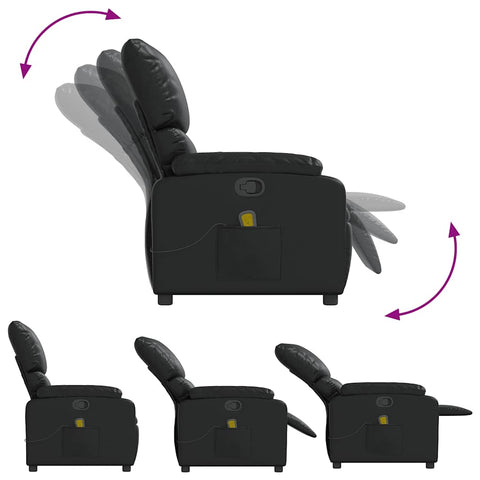 Atlošiamas masažinis krėslas, juodos spalvos, dirbtinė oda